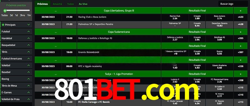 As apostas esportivas da 801bet são a melhor maneira de apostar nos seus esportes favoritos, seja ao vivo ou antes do jogo. Com uma enorme seleção de promoções e oportunidades de ganhar muito, nossa plataforma o manterá entretido por horas e horas! Você nunca ficará sem coisas divertidas para fazer na 801bet, porque sabemos como tratar bem os nossos clientes!